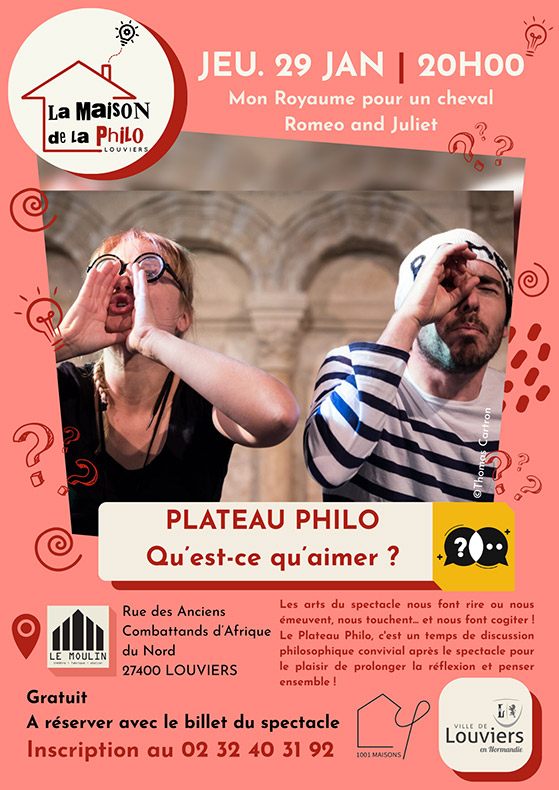 Les arts du spectacle nous font rire ou nous émeuvent, nous touchent... et nous font cogiter ! Le Plateau Philo, c’est un temps de discussion philosophique convivial après le spectacle pour le plaisir de prolonger la réflexion et penser ensemble !