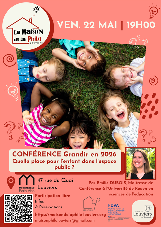 Emilie DUBOIS, Maitre de Conférence à l’Université de Rouen enseigne les sciences de l’éducation. Elle nous propose une réflexion sur l’enfance en résonance avec pratique de la philosophie avec les enfants qui nous est chère.