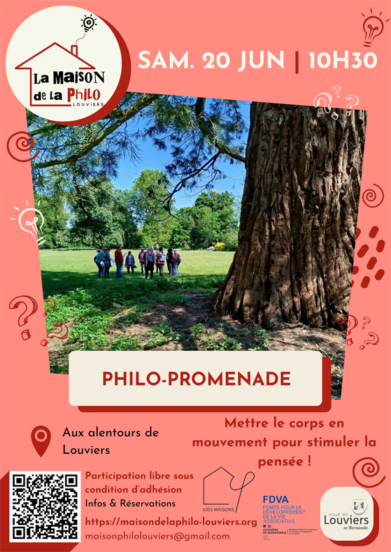 Le samedi 20/06/2026, mettons le corps en mouvement pour stimuler la pensée ! C’est ce que la Maison de la Philo vous propose à travers une philo-promenade au Chateau de Pinterville, près de Louviers. Un temps de marche ponctué de réflexions en groupe et individuelles pour cheminer ensemble sur de grandes questions.